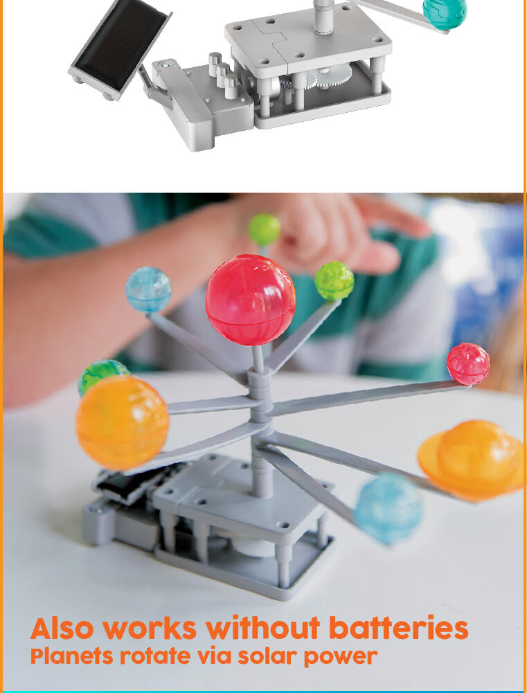 This Planetarium is a model of our Solar System. Watch the planets move around the Sun, powered by the Sun itself or the back-up battery.