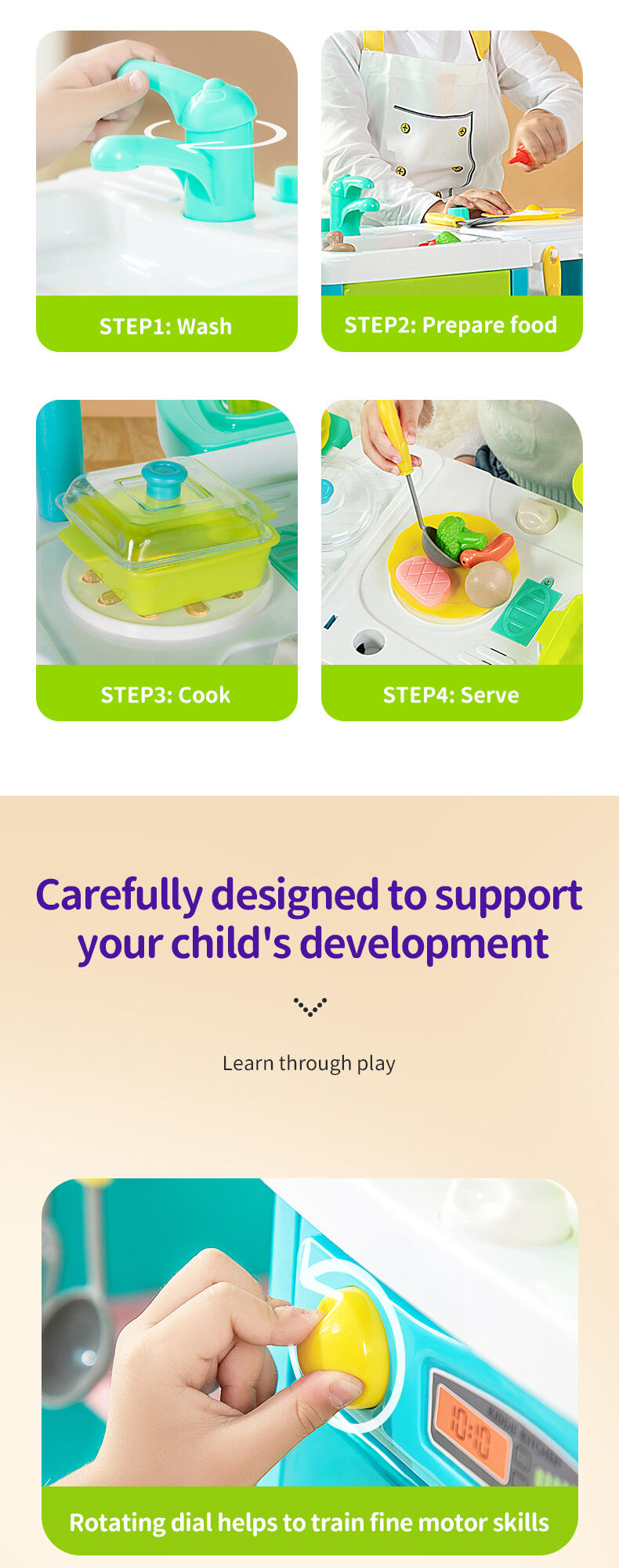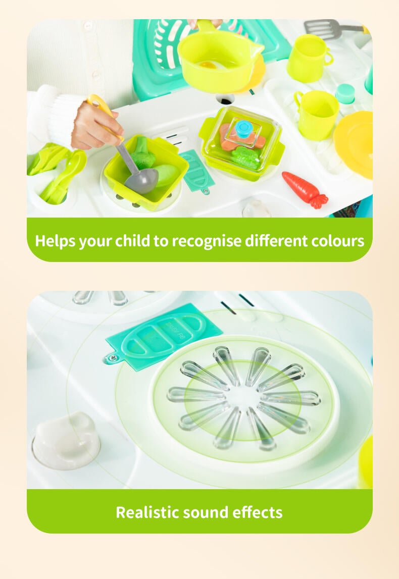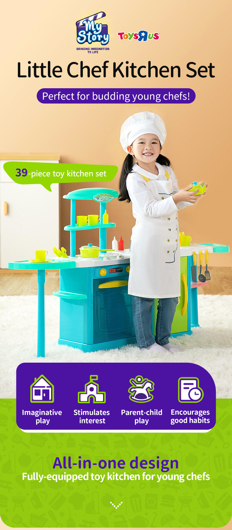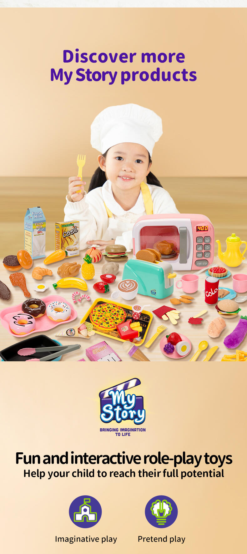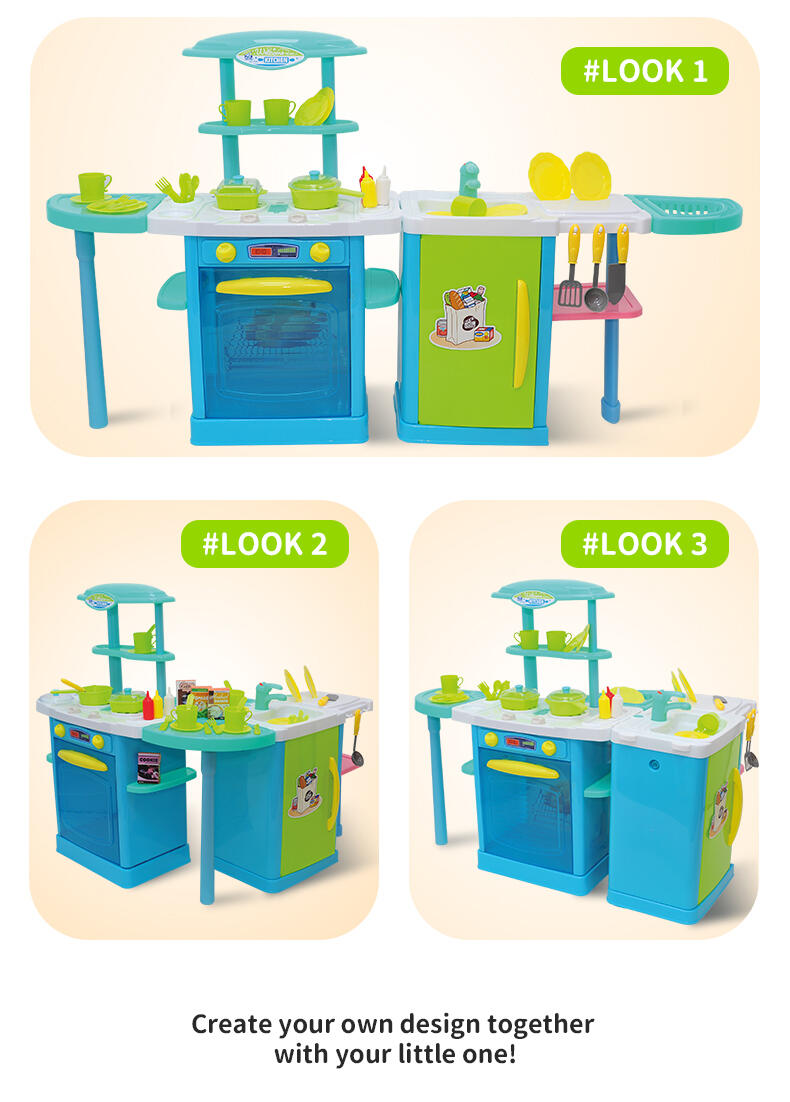 This customised kitchen set puts your little one totally in control of their own pretend-play set up. The 5-in-1 kitchen system includes a sink, prep station, oven, stove and storage cupboard. Special accessories like utensils, pots, pans, tableware, condiments and food ensure that kids can test practical skills and immerse themselves in a world of creative, self-directed play. This comprehensive set is ideal to help kids develop their confidence and creativity through social play and storytelling.