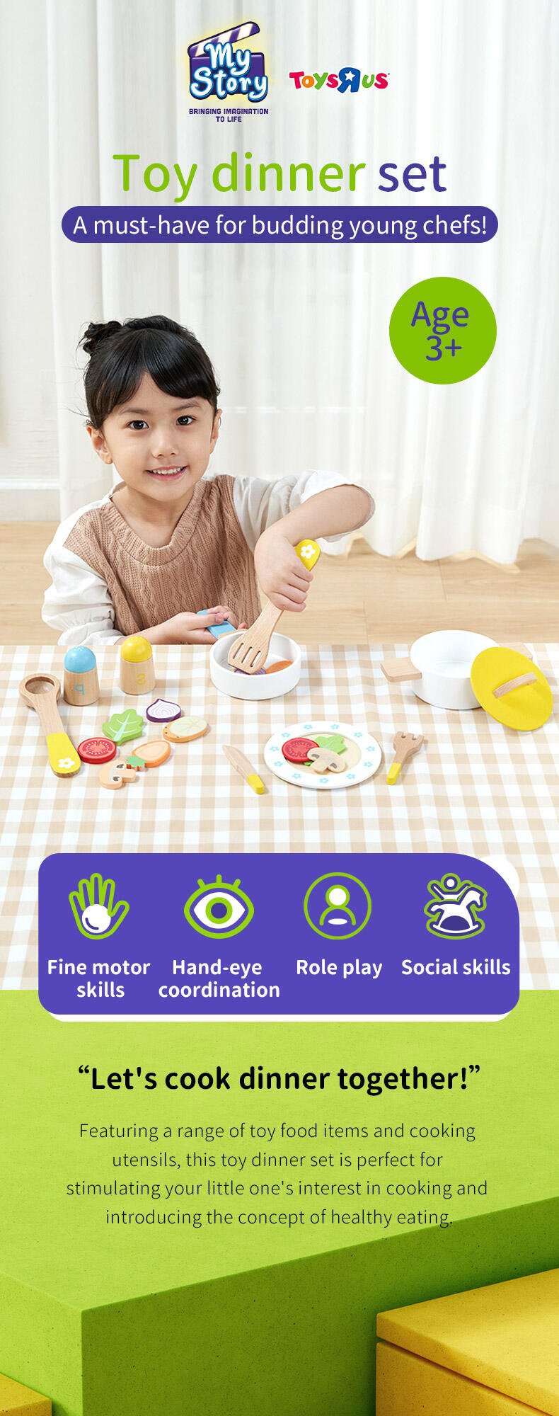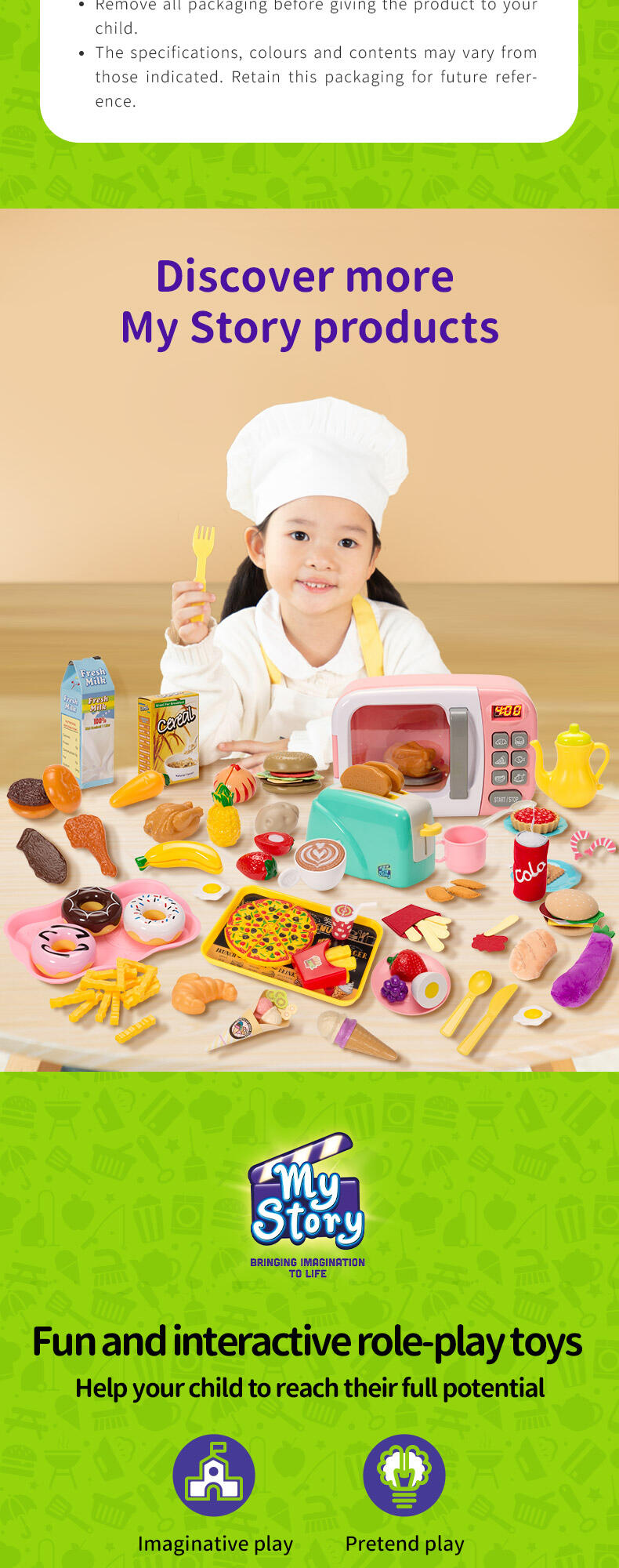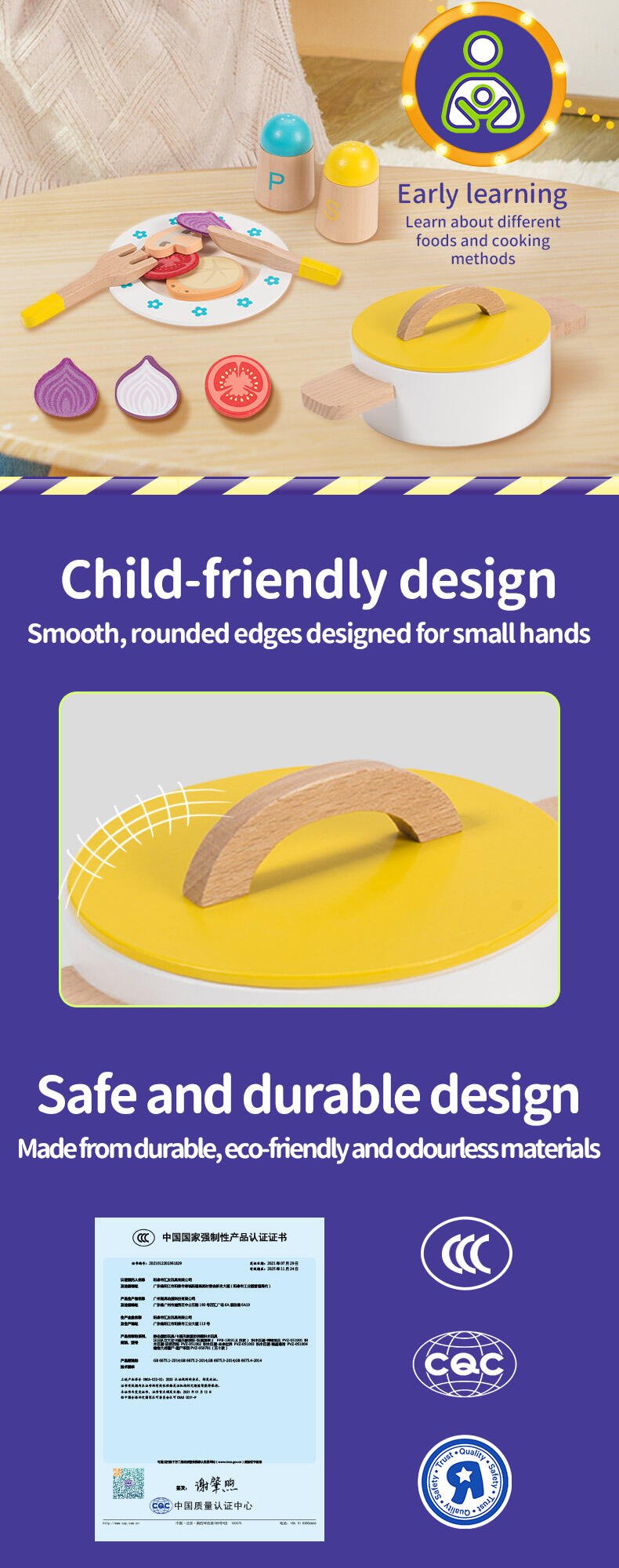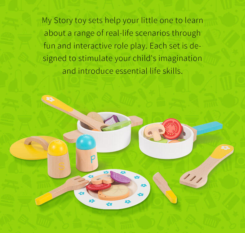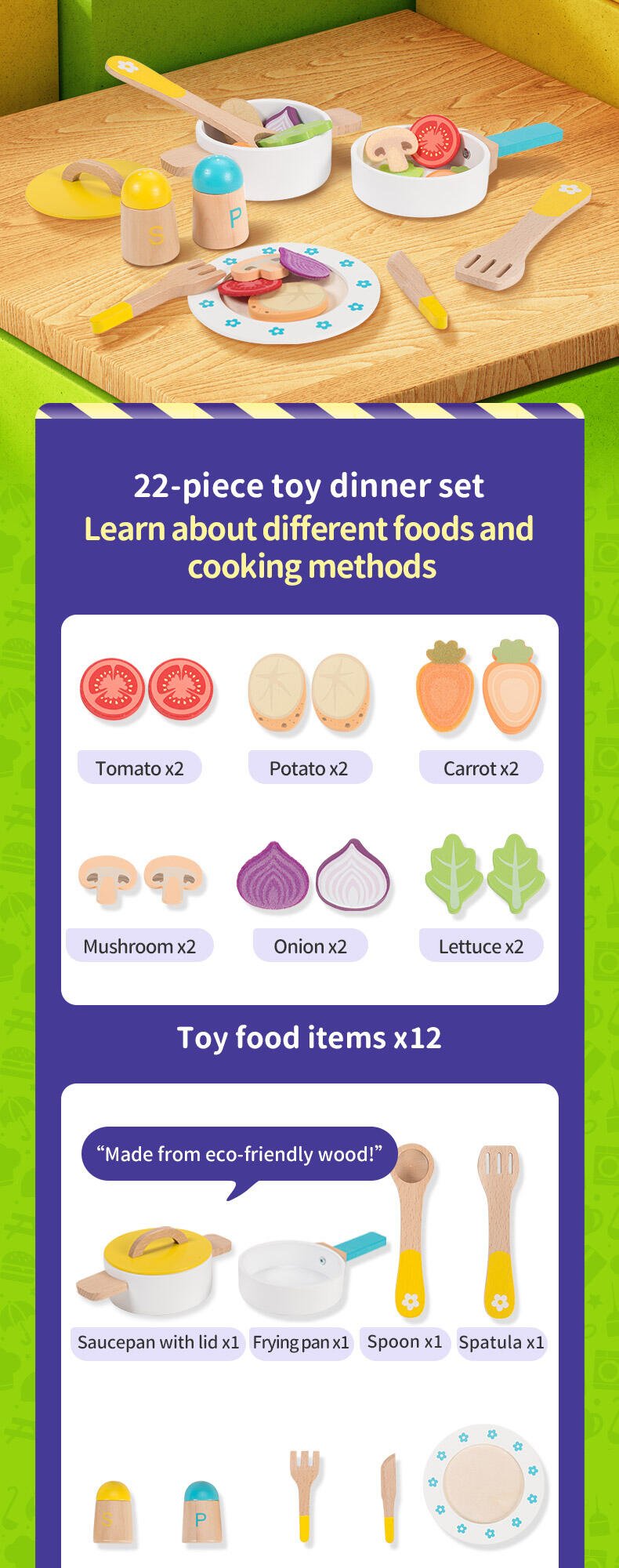 This comprehensive set has everything that little cooks and chefs need to let their imagination run wild in the kitchen! There are pots, pans, plates, utensils, condiments and 12 different food items. Each item is thoughtfully proportion for little hands and the rounded edges ensure that everything is safe and comfortable for little ones to use independently. Kids can enjoy hours of fun role-playing with this set, developing social and creative skills through independent, self-directed play.
