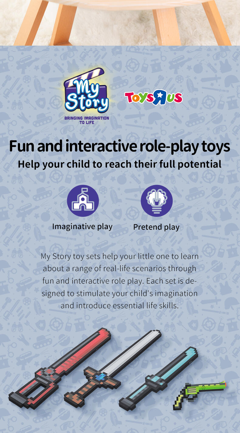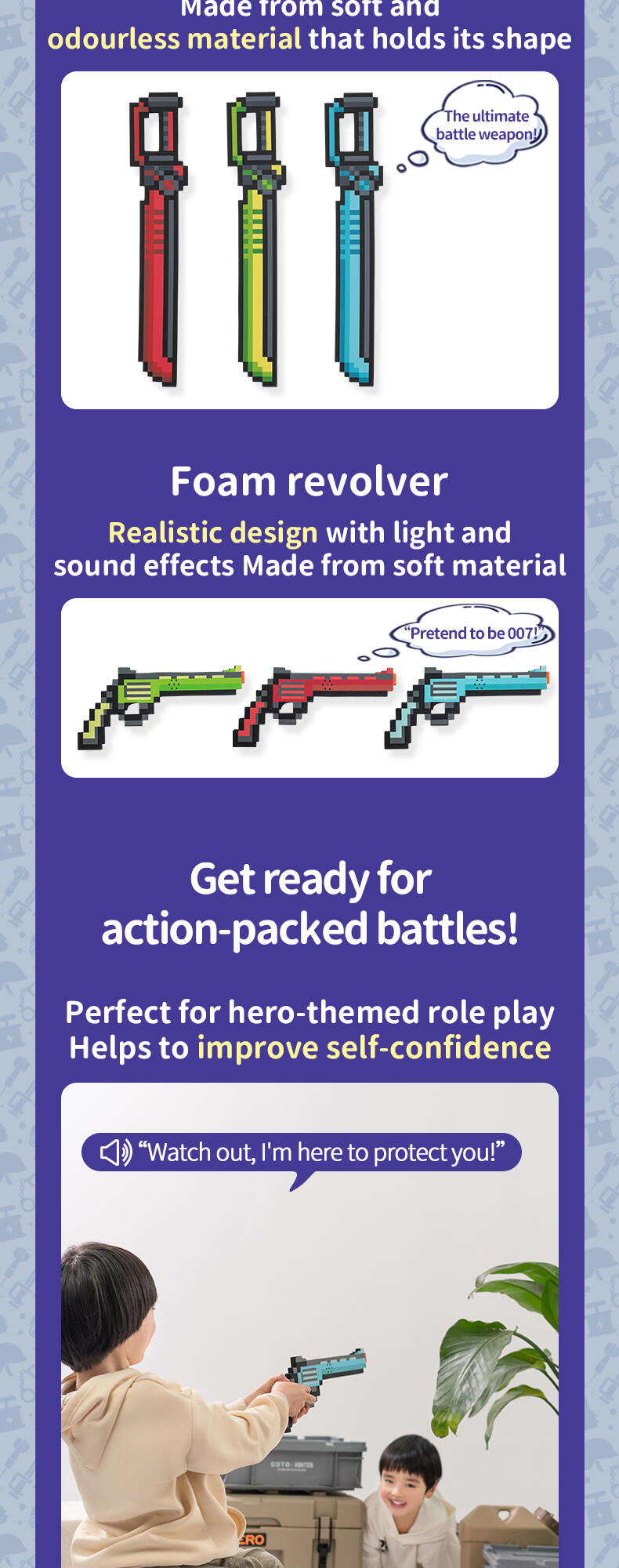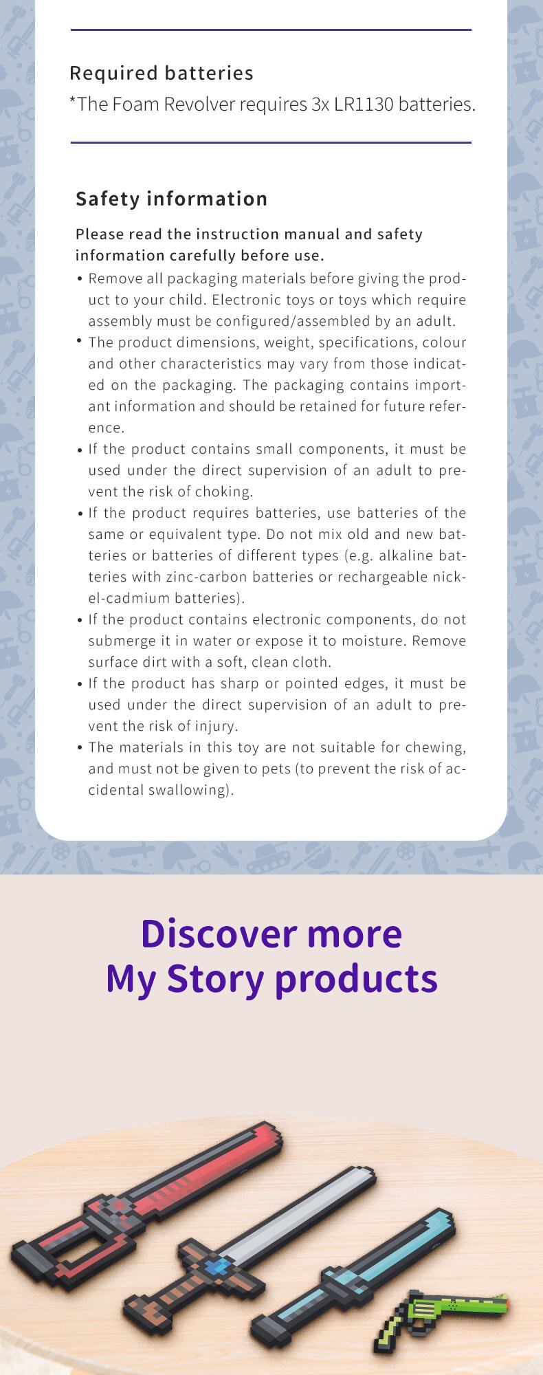 With this toy revolver, you little one will dive into the pixelated world protect their build up creations. With differnt sound and light effects, taking down foes who attack their town has never been easier. How will this pixelated story end?