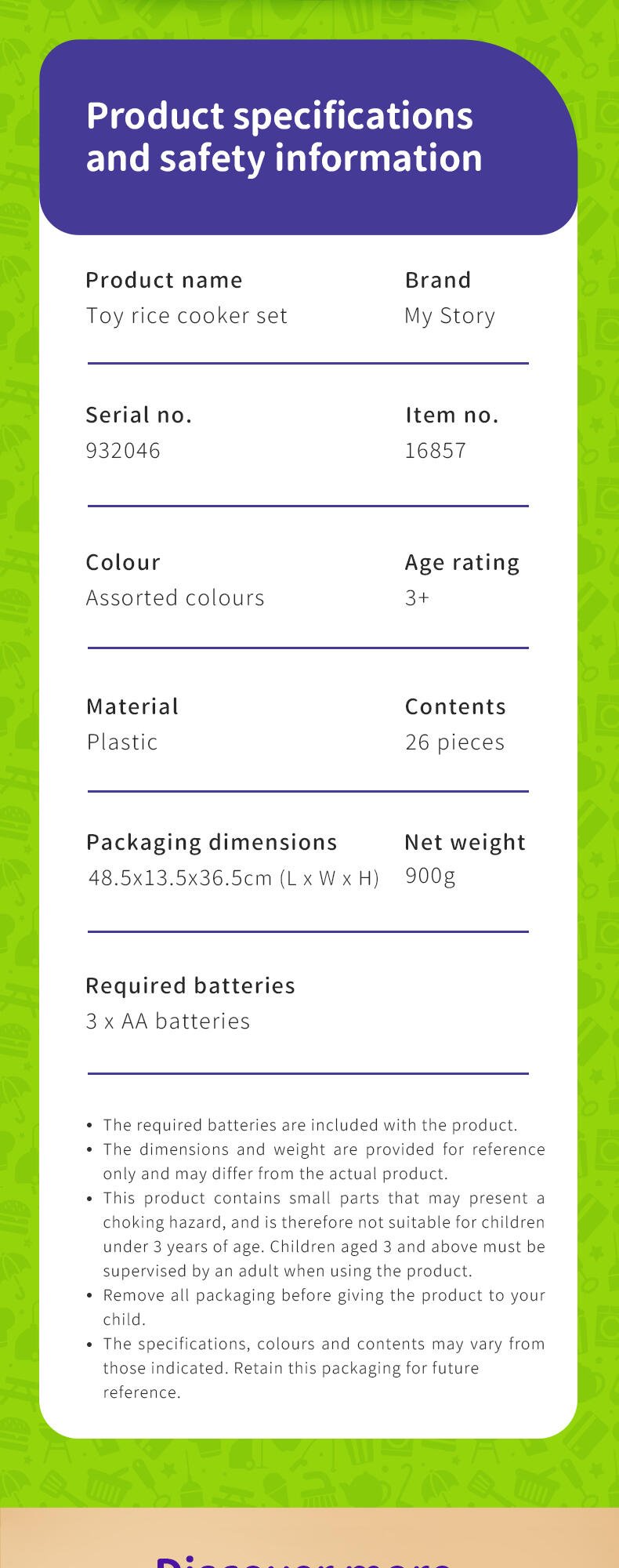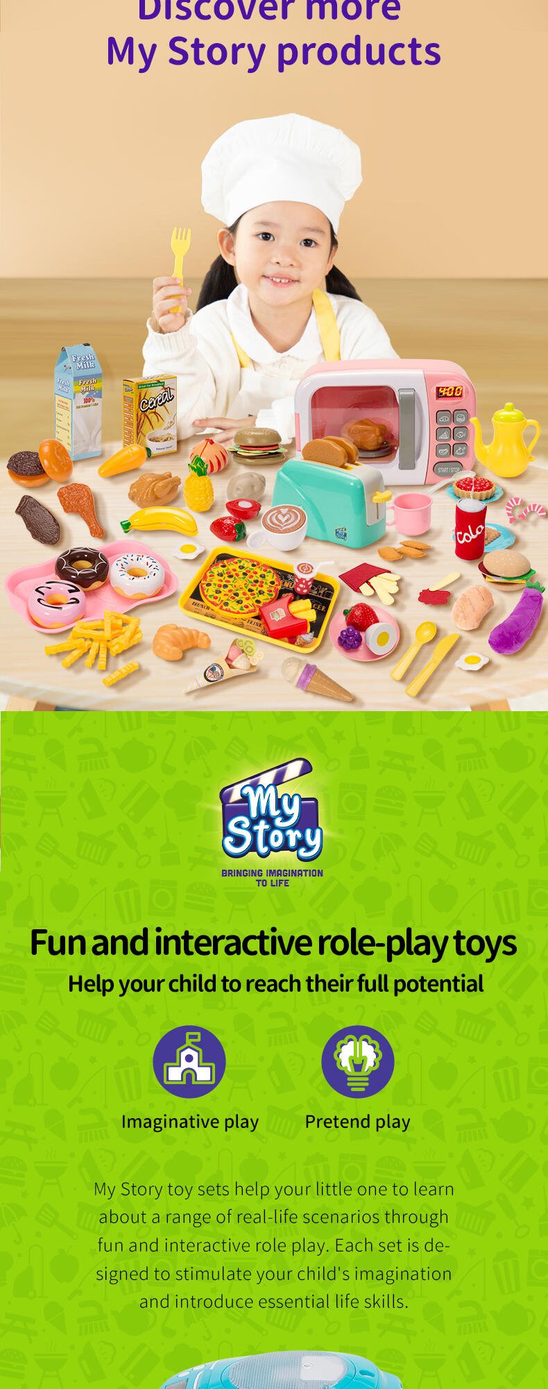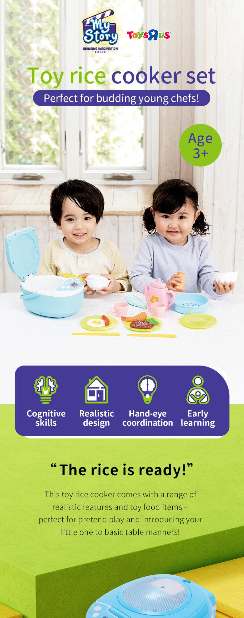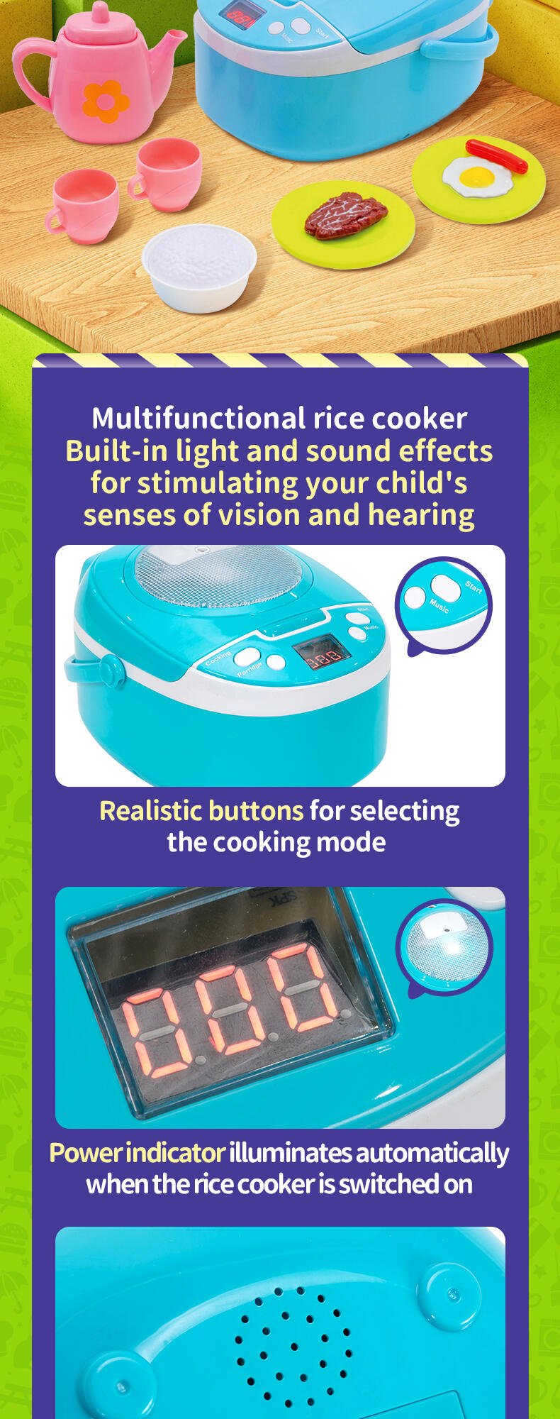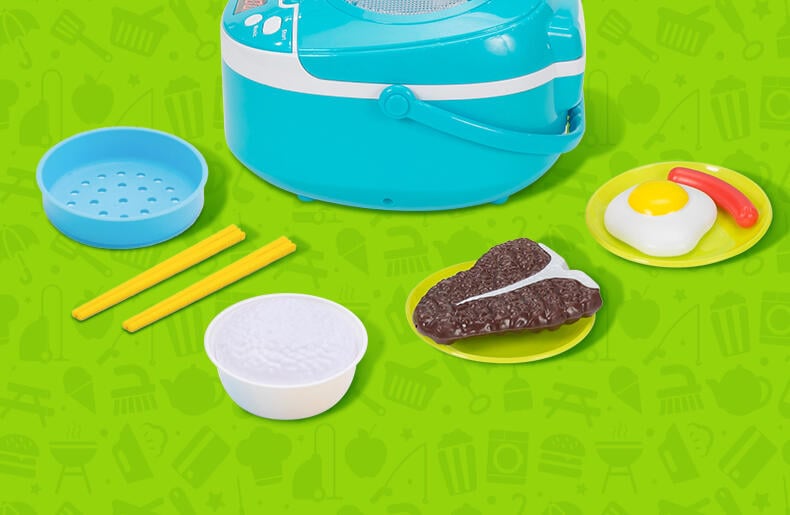 The realistic functions of this mini rice cooker will delight little chefs who have the chance to build their own stories and play scenarios, supported by the authentic look and feel of this set. The rice cooker has steam and sound effects, just like the real thing, and the set also includes utensils and ingredients to create delicious meals. Kids can develop their creative abilities, build a positive relationship with a variety of nutritional foods, and immerse themselves in practical and life-like scenarios.