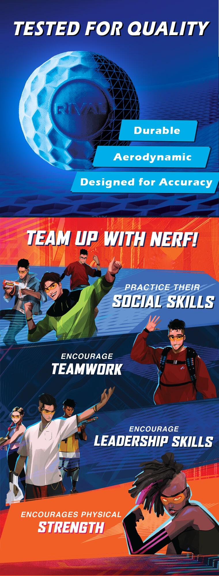 Blast into Nerf Rival competitions with this compact powerhouse to knock out the competition! The Knockout XX-100 blaster packs high-intensity Nerf Rival power in a small size. Fire off rounds at 85 feet per second from this spring-action, single-shot blaster that's great for games that move fast and keep you on the run. Playing in a small area? The breech-load Knockout XX-100 is ideal for close spaces and stealth attacks. It has built-in round storage and comes with 2 Official Nerf Rival Rounds. Trigger lock prevents it from firing accidently. Load 1 round, prime, and pull the trigger to fire. Team Blue version. Hand-powered (no batteries required).