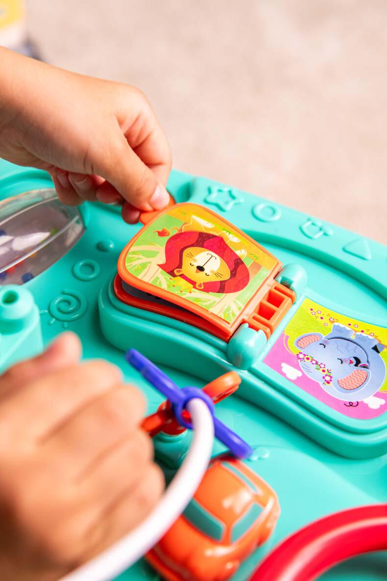 From gears to turn, a roller to spin, a steering wheel to master, and so much more to explore!