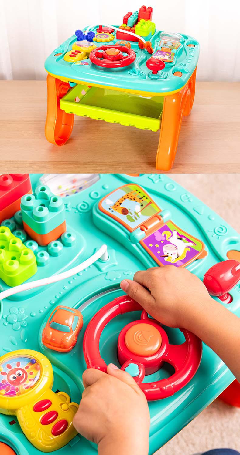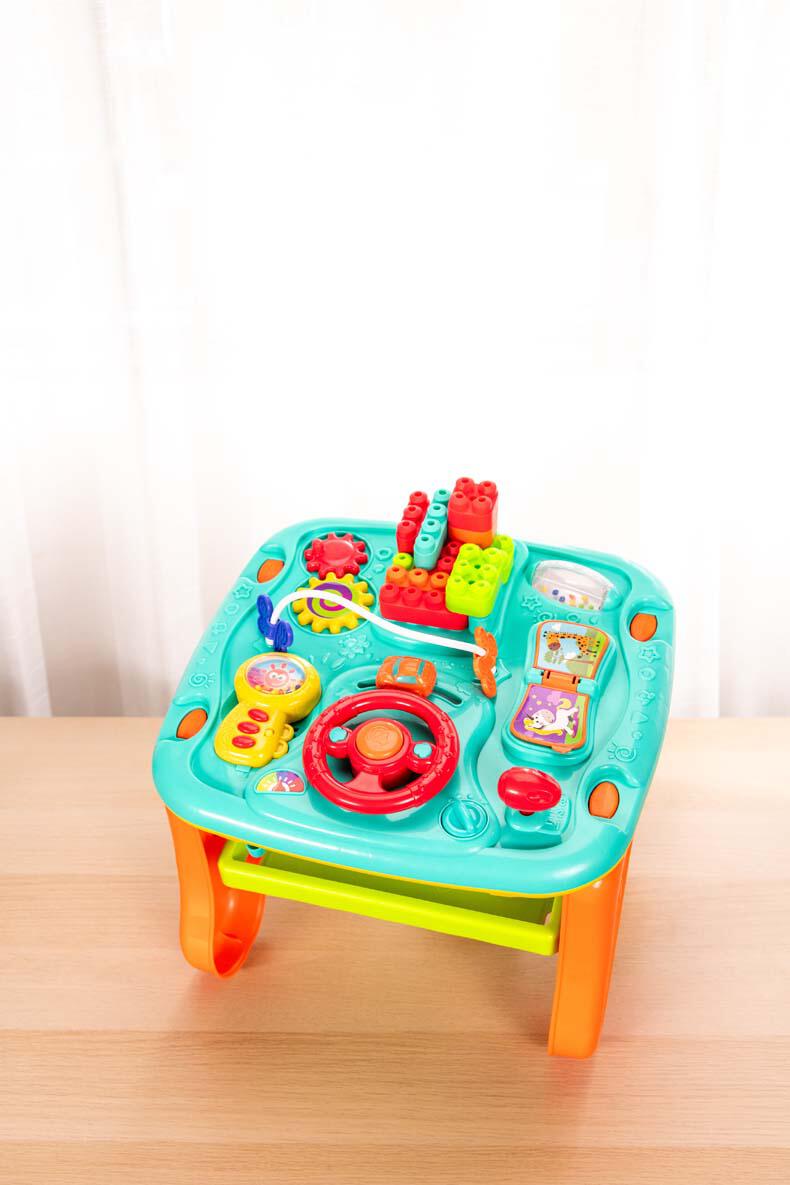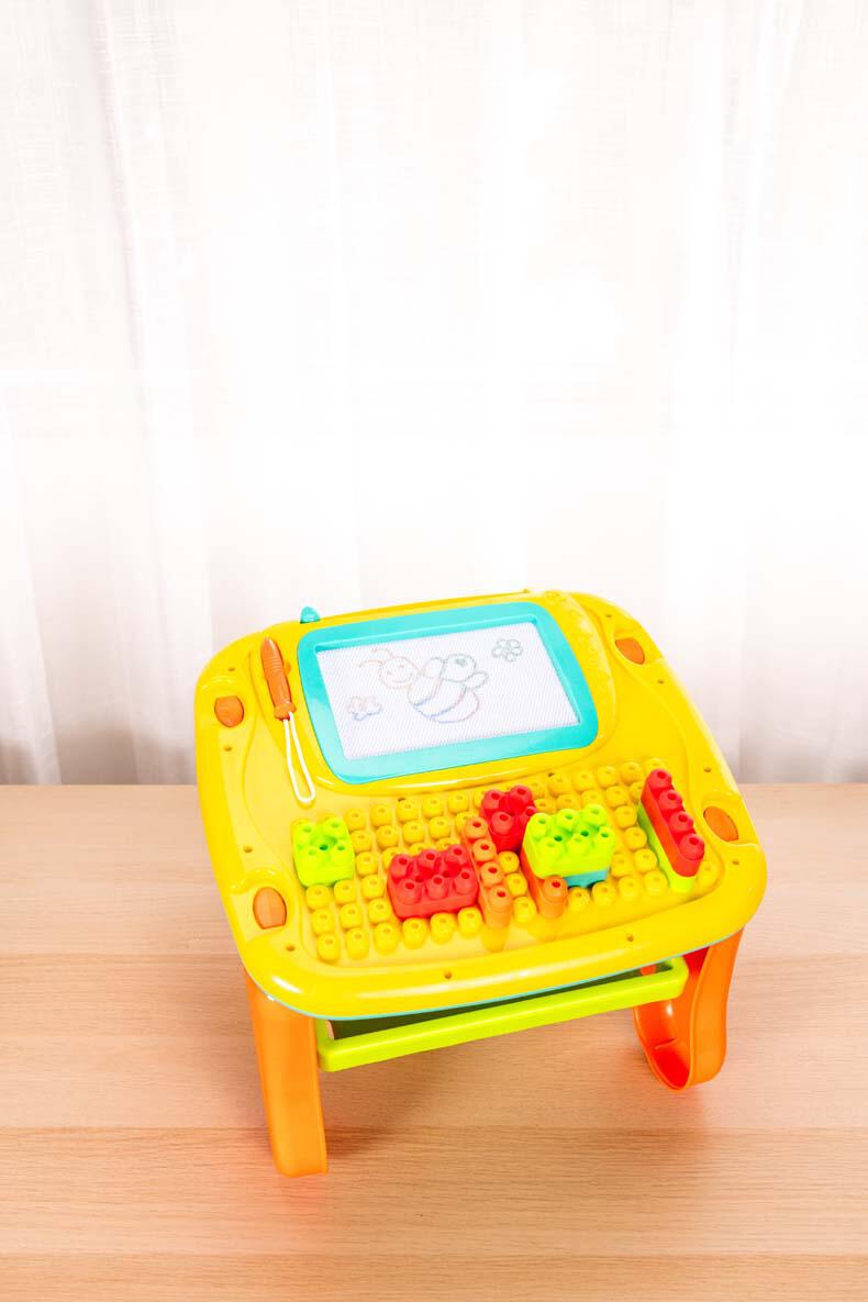 - A vibrant, interactive double-sided play table featuring a wide array of engaging activities