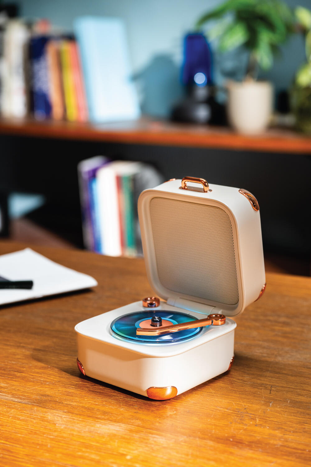 • Miniature exquisite retro Bluetooth speaker: A vinyl record that will spin when music is played and Cool lighting effects
