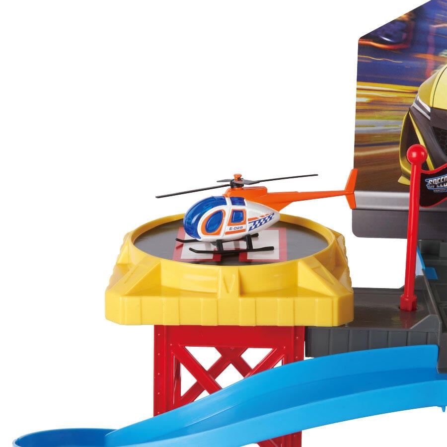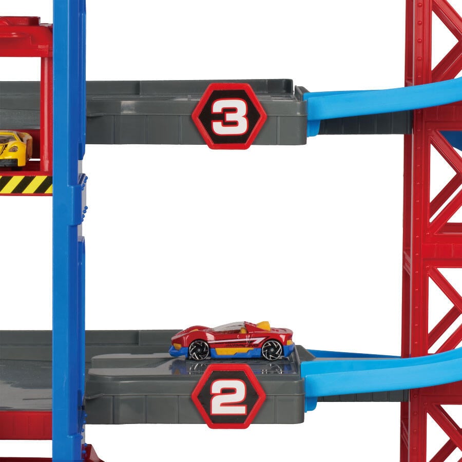 The Super City Garage is the ultimate hub for speedsters and movers in the city. Set across 4 expansive levels the set includes a working car lift, vehicle launcher and 5 die-cast vehicles. Take to the skies via the rooftop helipad landing deck and see the city from new heights. Everything you need and more to experience the best elements of a busy city.