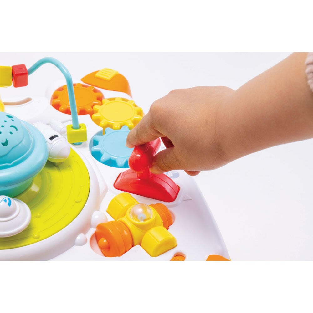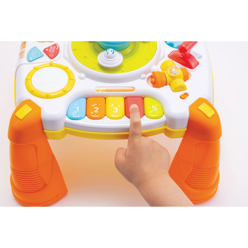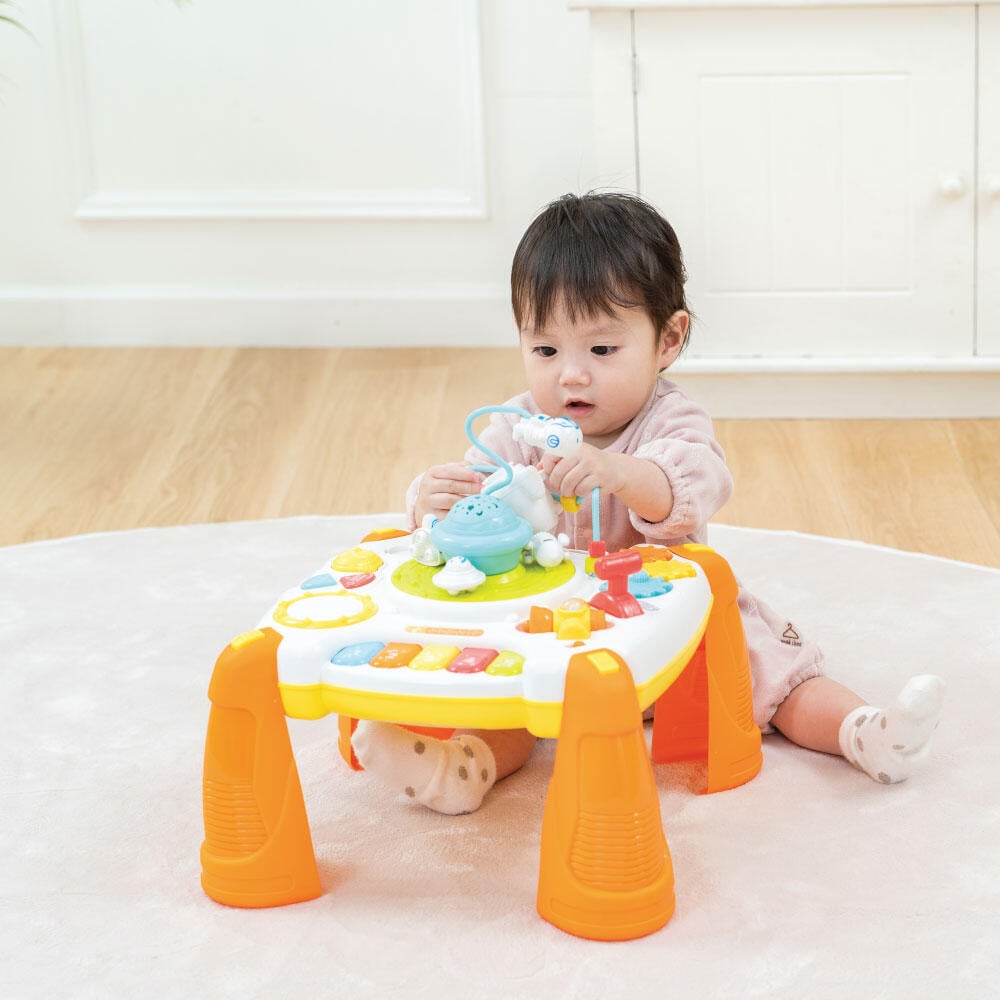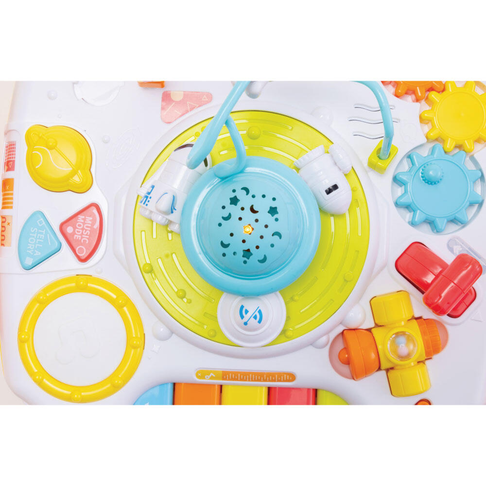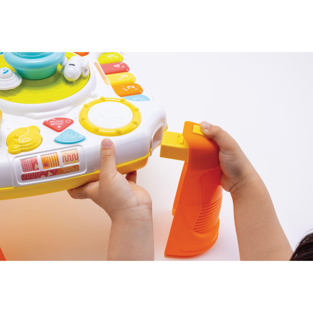 The Multi-Function Music and Activity Table has it all! The double-sided table includes a 5-note keyboard and drum set, as well as spinning gears, sliding beads and a little spacecraft! There are also 50 colourful building blocks that little ones can use to let their imagination run wild. This set will builds essential motor skills, as well as encouraging movement and creative self expression. The table legs can be removed for easy storage or to allow for set up on different surfaces at different heights.